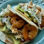 The shrimp get tossed in smoky spices, seared in hot pan, then glazed with butter, honey and lime for a glossy, irresistible finish. Add a cool, creamy cilantro-lime slaw and buttery avocado slices, and you’ve got tacos that are bright, balanced, and bursting with flavor.